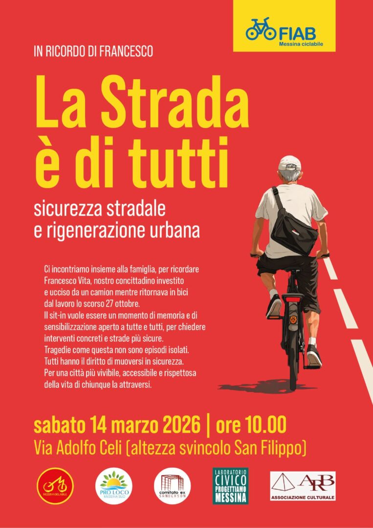 Come FIAB Messina Ciclabile sentiamo il dovere di esserci, con rispetto e sobrietà, accanto alla famiglia e alla città. Vi invitiamo a partecipare e a diffondere l’iniziativa: la presenza della nostra comunità è importante, per dare forza a un messaggio che riguarda tutti.